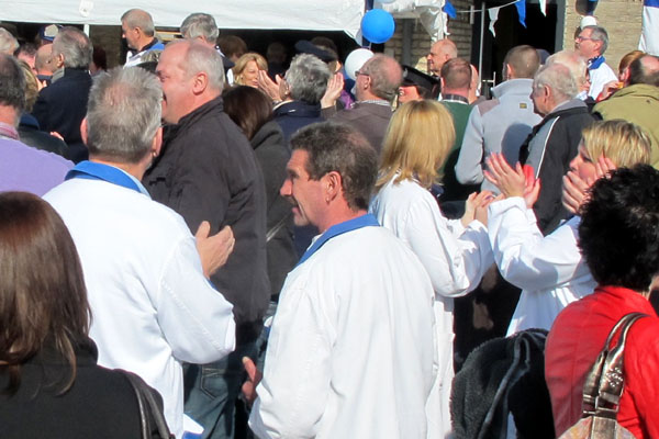Deze week bereikte ons het droeve bericht dat op 8 september, op 50-jarige leeftijd, is overleden Patrick Boeykens, “snijmeester” van de Oude Gans te Berendrecht. In 1990 was hij Koning van de Oude Gans. Wij herinneren ons Patrick als een bescheiden, vriendelijk en uiterst betrokken verenigingslid, bijvoorbeeld van onze ontmoeting op 11 maart 2012 bij de ontvangst van Koning Pieter Aendekerk en het aansluitende ganzenrijden te Berendrecht (zie foto). Uitvaartdienst en bijzetting vonden vandaag plaats te Berendrecht. Wij wensen de vereniging, familie en verdere vrienden en bekenden veel sterkte bij de verwerking van dit onverwachte verlies.